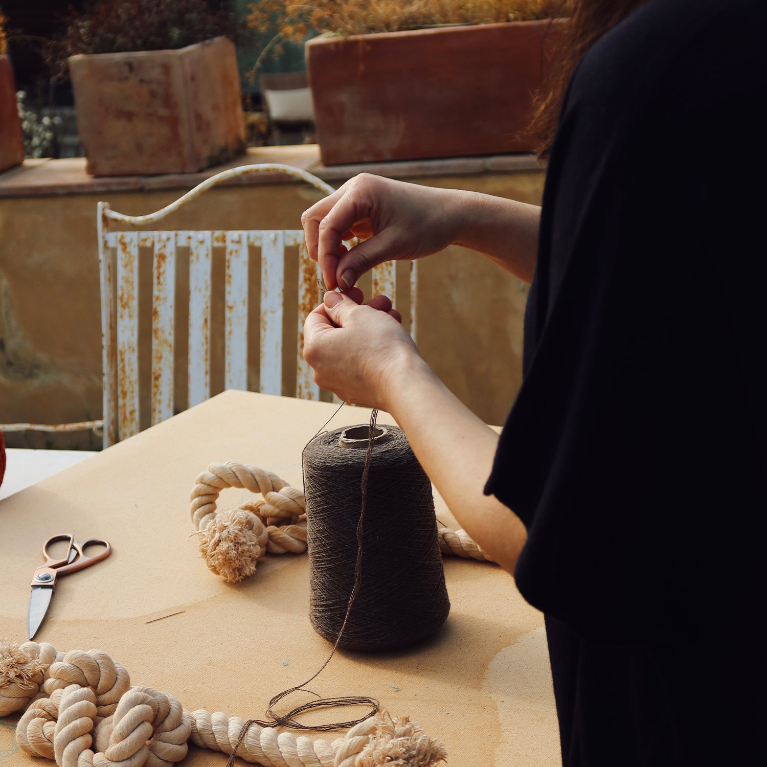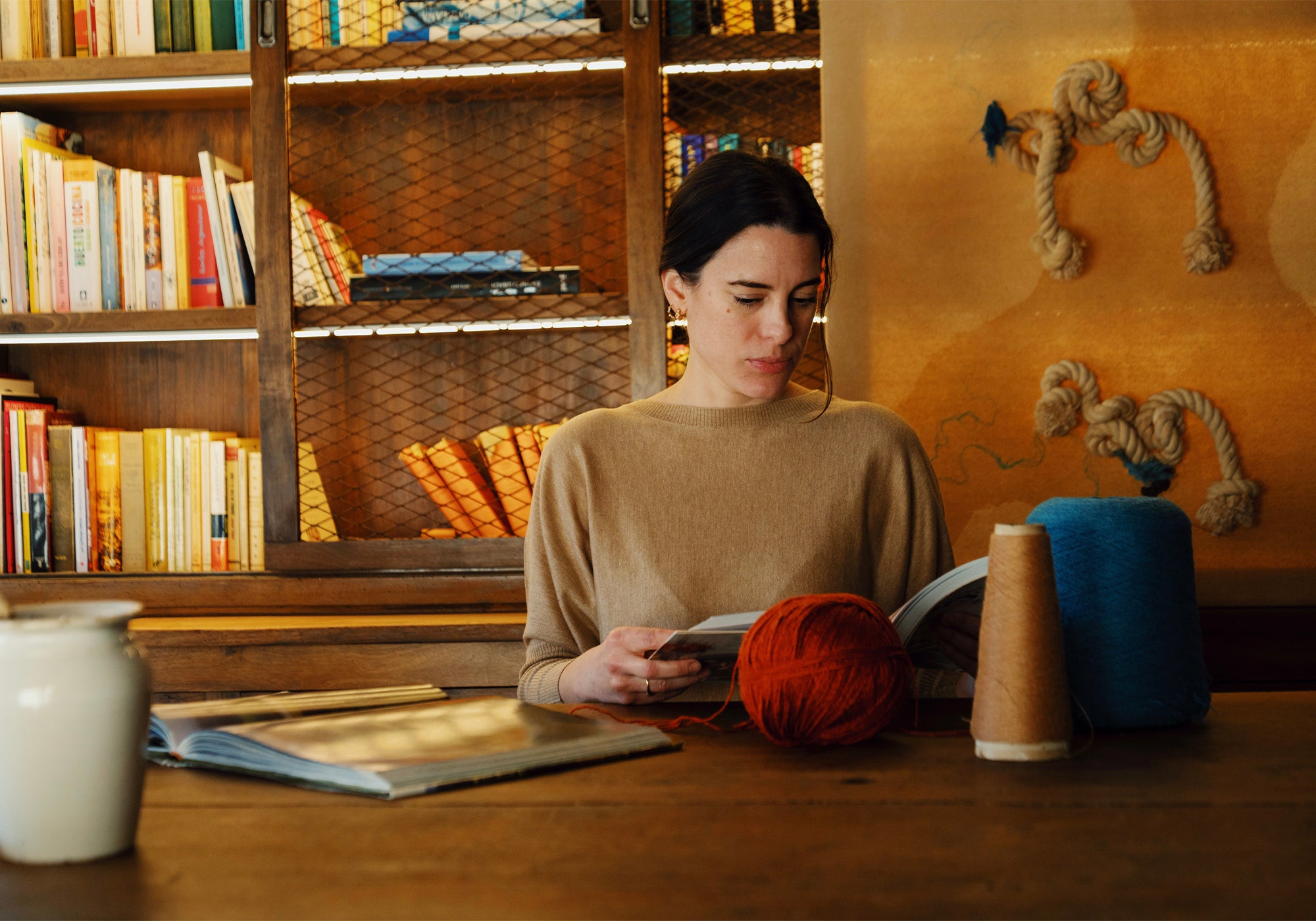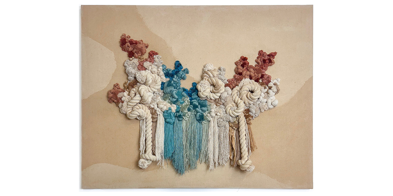 Esta colaboración nace del deseo de utilizar nuestras fibras naturales no solo como prenda, sino como expresión. Una obra que no se viste, pero que transmite algo que también se siente en la piel: una sensación de calma, de calidez, de presencia.