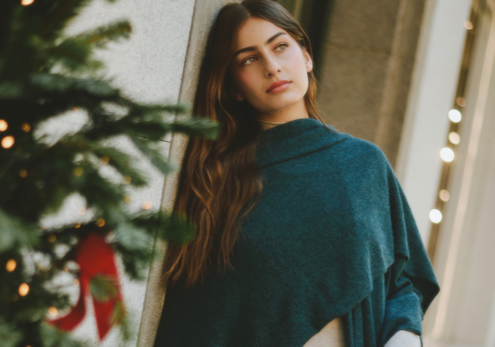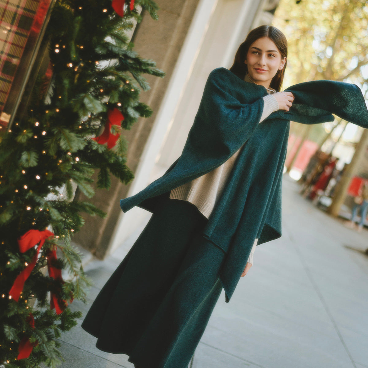 No terminamos de decidir que destacar, si el color verde de esta temporada de Invierno o la calidez de esta capa tan versátil. Ideal para un look elegante estas fiestas.